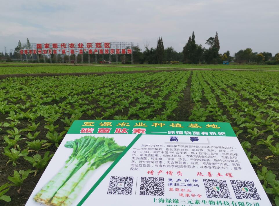 成都彭州大白菜、萵筍碳菌肽素有機肥示范基地